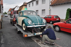 Der Käfer bekommt Leben eingehaucht und wird zu unserem Freund Jürgen gebracht,der VW Spezialist.